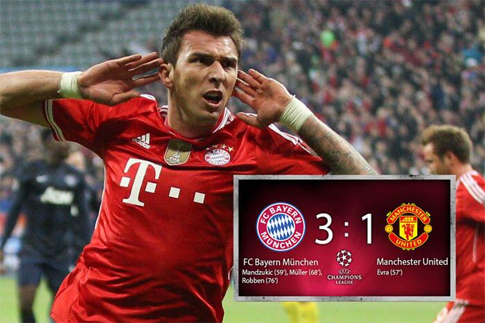 Bayern Munich 3-1 Manchester United. Bayern prevail 4-2 on aggregate and are into the draw for the Champions League semi-final round.